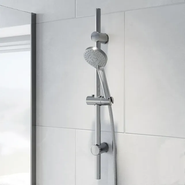 Add a touch of functionality and style to your shower with the round handset. This handset offers a classic showering experience for you to enjoy. An adjustable riser rail is also incorporated, so you can easily adjust the shower handset to the perfect height.