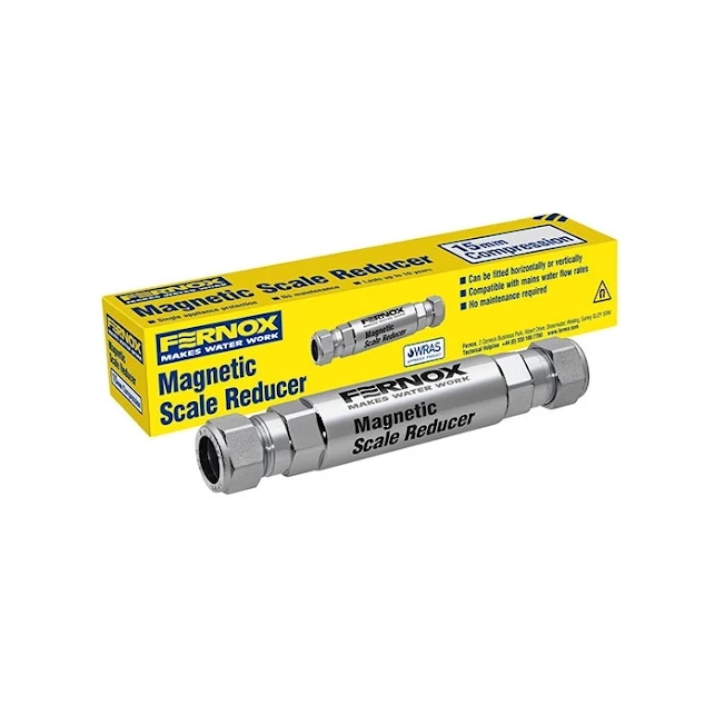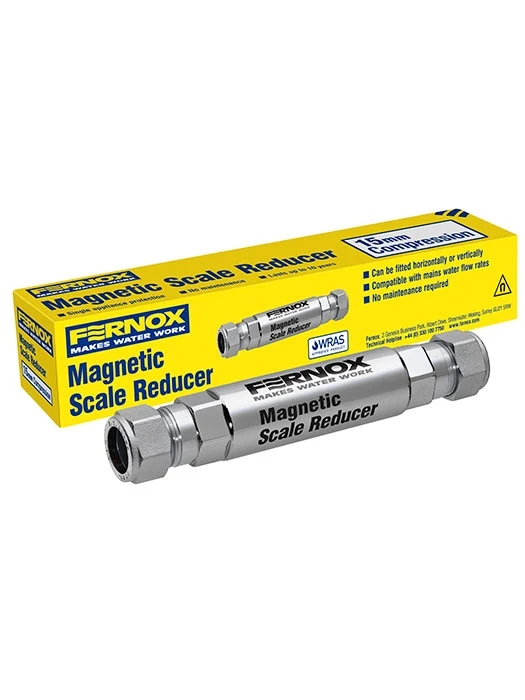 The Fernox Magnetic Scale Reducer is not a water softener but it encourages coagulation whilst the water hardness remains unchanged.