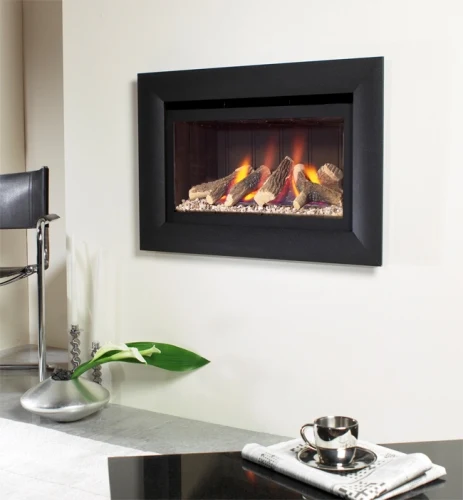 This stunning glass fronted “hole-in-the-wall” fire comes with a highly realistic log fuel bed. Available in a choice of three models; Jazz Black, Jazz Cream & Jazz Impact. Jazz Black models are complete with high quality extruded aluminium trims in four alternative finishes – silver, champagne, black or Impact, whilst the Cream model comes with a champagne trim only.