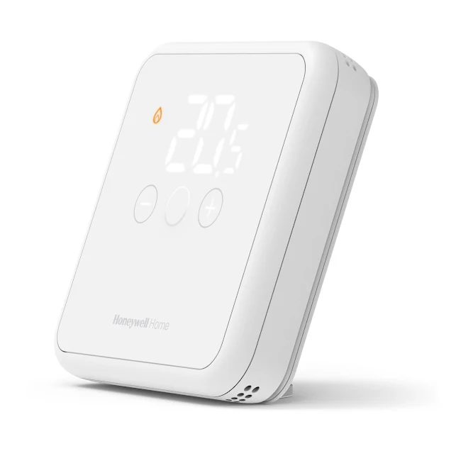 The Honeywell DT4 wired room thermostat features a slim, contemporary design in an attractive white finish. With its easy-to-operate wake-up button and large, clear LED display, it offers simple functionality for controlling the temperature of your home.