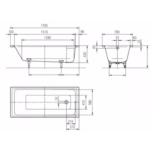 Kaldewei Puro Bath 1700 x 700mm 2 Tap Holes – 258720000001