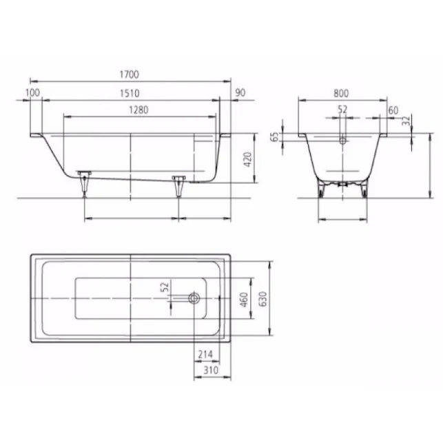 The Kaldewei Puro Bath 1700 x 800mm 2 Tap Holes comes with a 52mm outlet connection and incredibly spacious bath width makes this the perfect choice for your new modern bathroom design.
