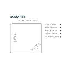Just Trays JTFusion Low Profile 900 X 900mm Square Stone Resin Shower Tray With Waste