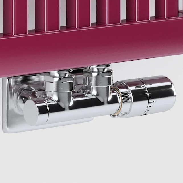The Terma thermostatic H Valve Set is specially designed for 50mm connection pipes. H-Block Valves are designed to consolidate the connections of your H-Block Compatible radiator into one block, both for space saving and aesthetic reasons. Available in both angled and straight configurations to suit horizontal and vertical placed radiators in any space in the home.