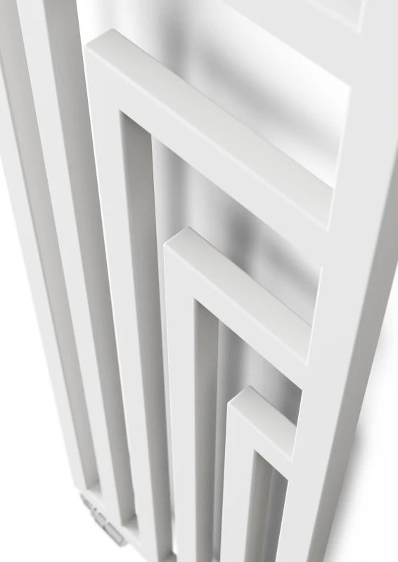 The Terma Angus features diamond shaped bars in ever decreasing angled profiles, forming a unique linear design setting it apart from standard design bar radiators. Framed in a square profile the imitates artwork hung on the wall, effective design wise in both the bathroom and living spaces of the home. Matching coloured brackets help achieve the designer aesthetic of the radiator, combined with modern vertical installation.