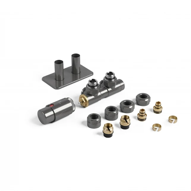 Terma Twins Left Sided All in One Integrated 50mm Valves with Pipe Masking Set for Hex Radiator Sparkling Grey